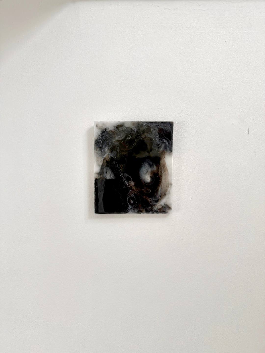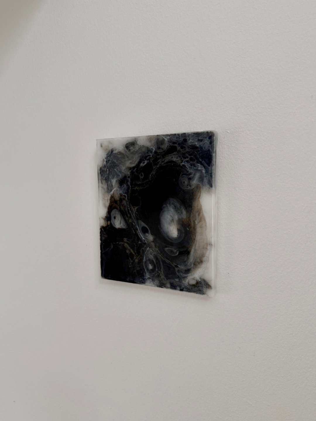 Dybet (The deep) invites the viewer into the dark, layered depths of the ocean floor. Shadows and textures intertwine, forming intricate details that slowly reveal themselves the longer you look. Light glimmers faintly across the surface, hinting at movement far above, while the darkness below feels infinite, dense, and still. The painting is about immersion, the sensation of sinking into complexity, and the quiet discovery that comes from taking the time to explore what lies beneath.