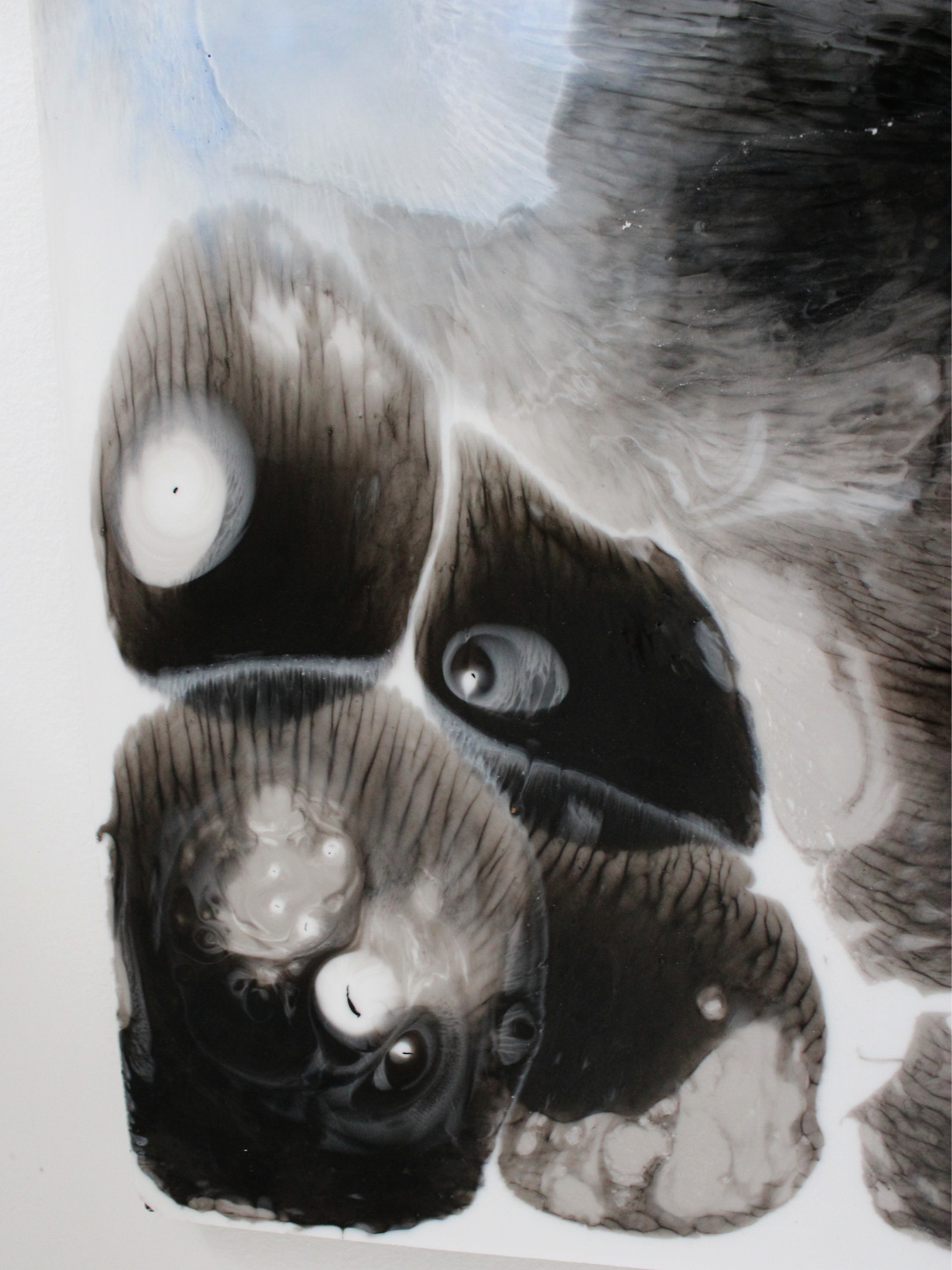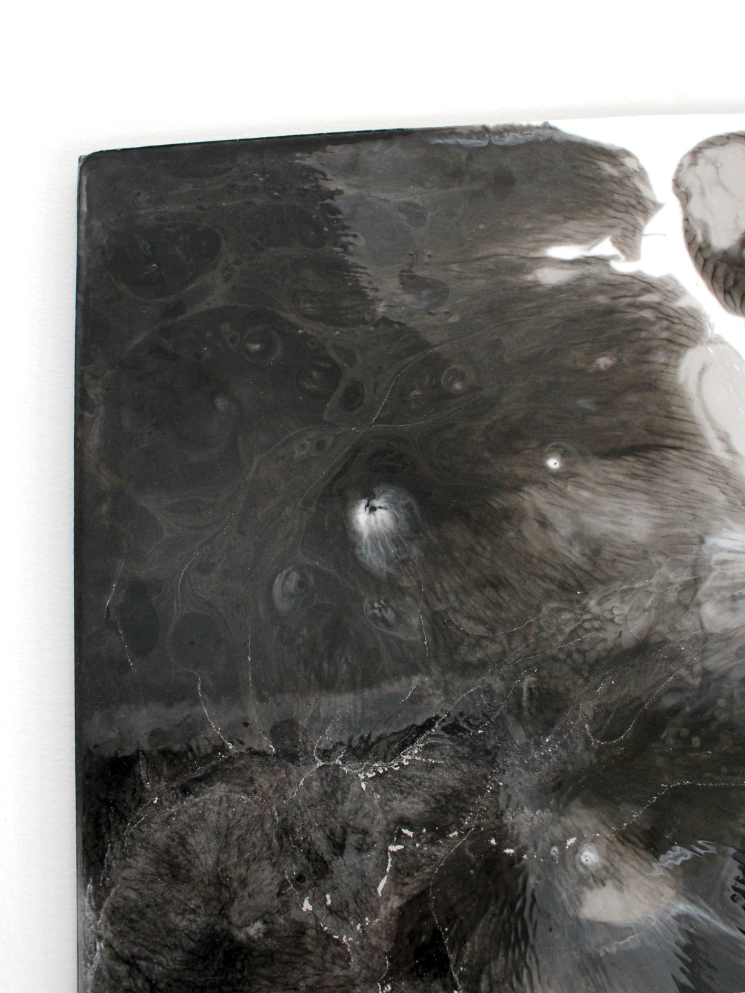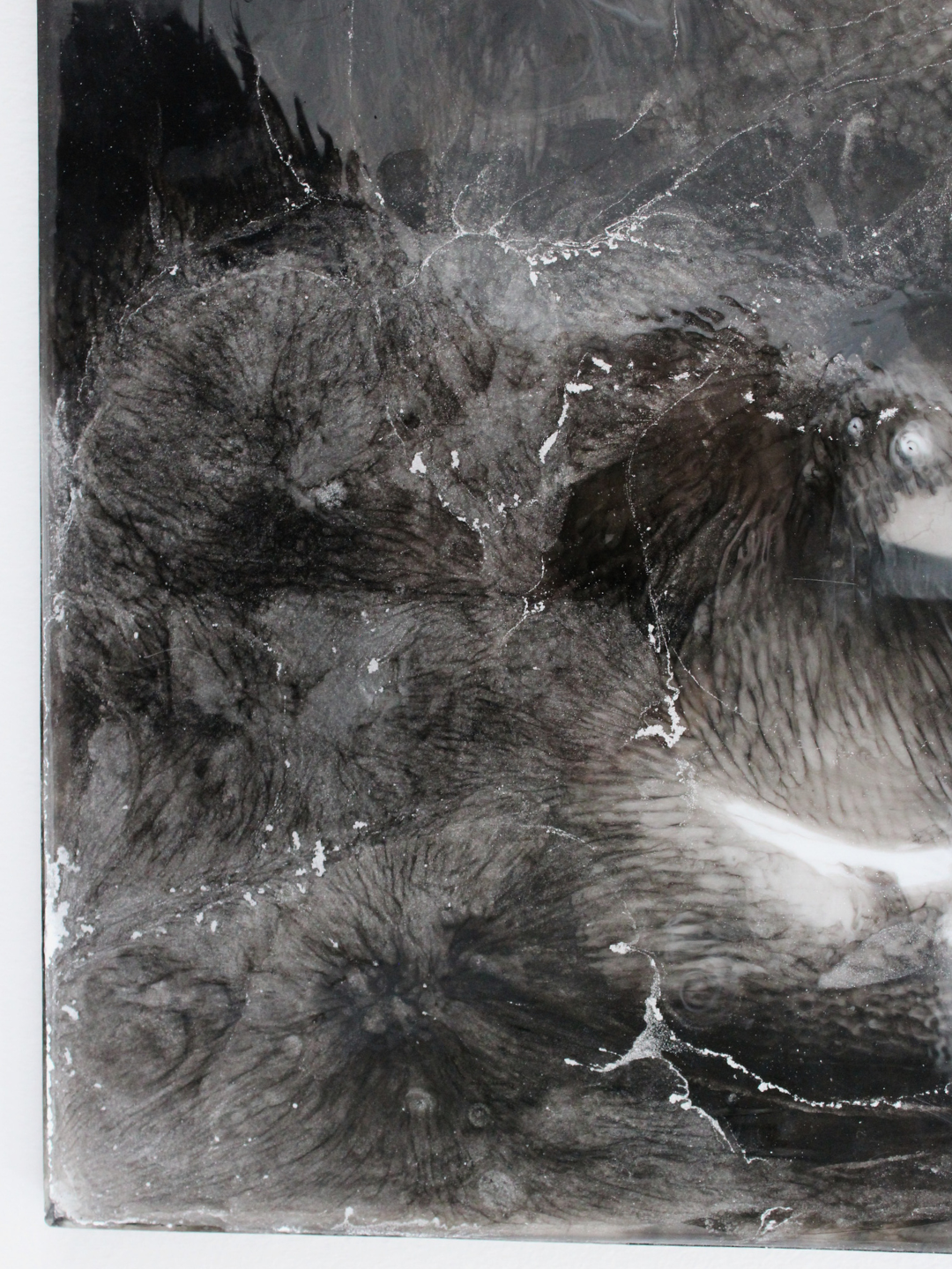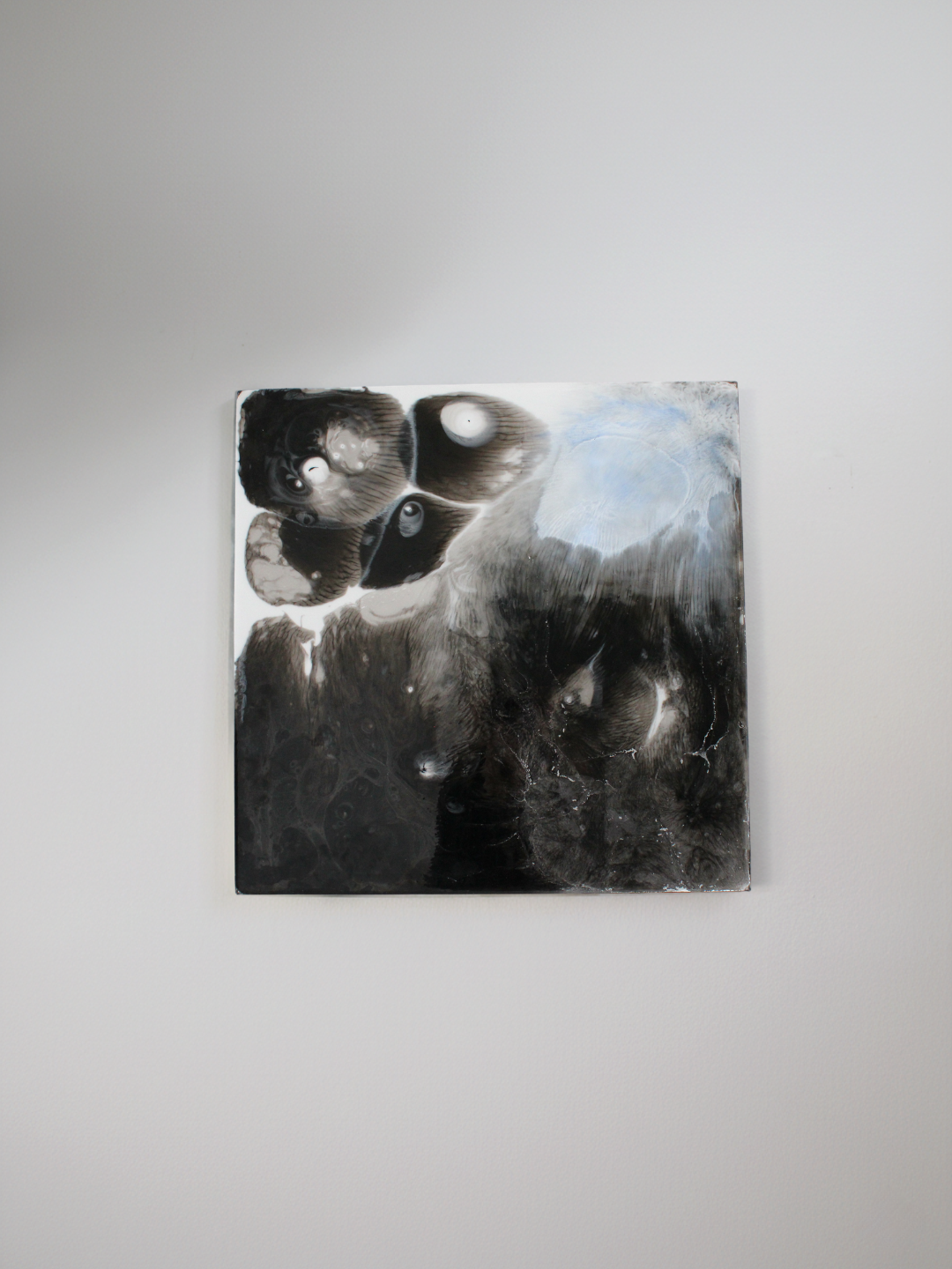This piece is titled Frost because it evokes the frozen black water, where ice catches the light and shimmers as you move past it. The deep blues convey the cold stillness of winter, while the darkness is so intense that it almost becomes a mirror, reflecting the viewer and the surrounding space.