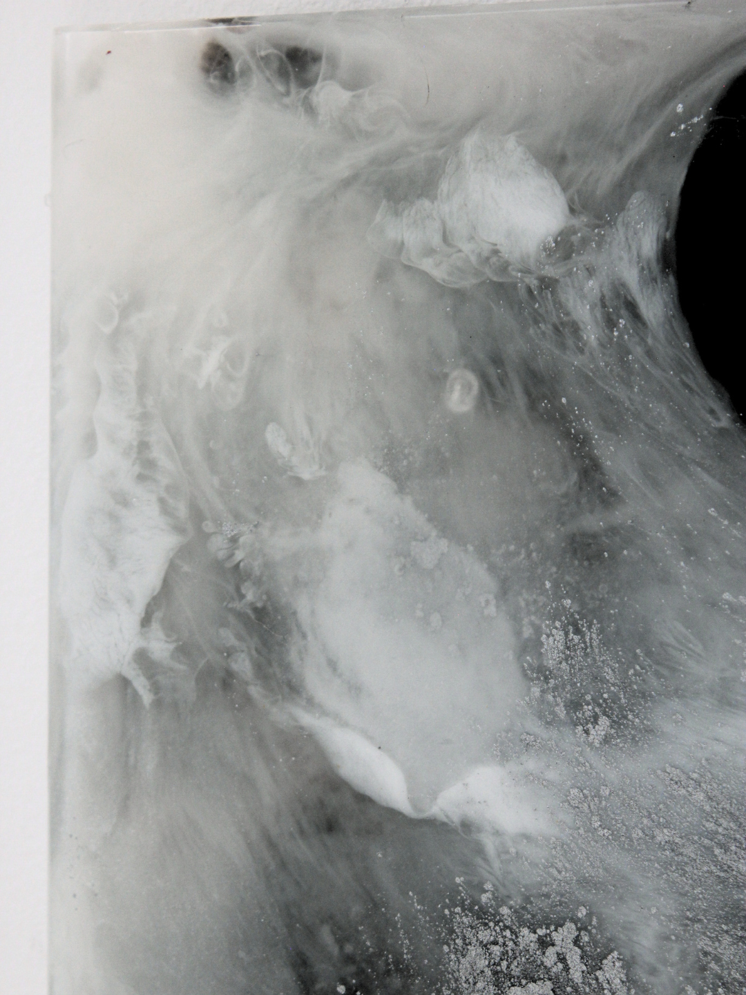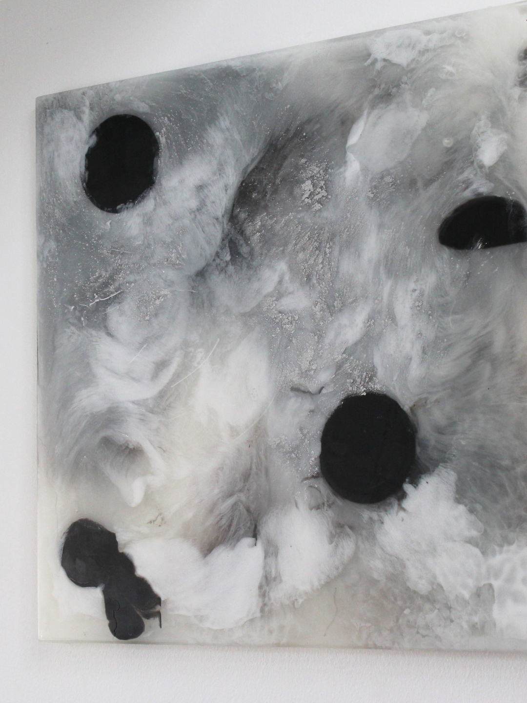 This work is titled Havgus because it captures the quiet tension between clarity and blur, as the surface is matte. The soft, sliding layers of gray and white dissolve into each other like fog drifting across the surface of the sea. Shapes emerge and disappear again without ever being completely sharp, just as the havgus blurs the horizon and alters our perception.